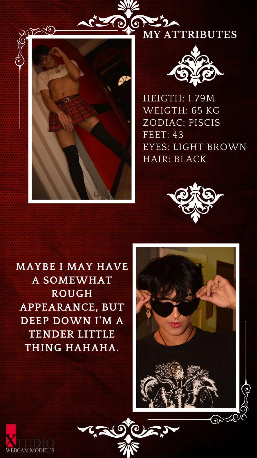 Шлепки, Анилингус, Камшот, Кольцо на член, Дилдо или вибратор, Фут-фетиш, Шоу с маслом, Оргазм, Мастурбация пальцами, Эротические танцы, Стриптиз, Душ, Кончить на лицо, Засвет, Минет, Мастурбация, Игрушки для сосков, Секс-игрушки, Анальные игрушки, Инструкция по глотанию спермы, Рейтинг члена, Унижение, Эякуляция, Курение, Дрочка рукой, Под юбкой, Кожа, Рогоносцы, Грязные разговоры, Каблуки, Унижение маленького пениса, Пеггинг, Ролевые игры, Корсет